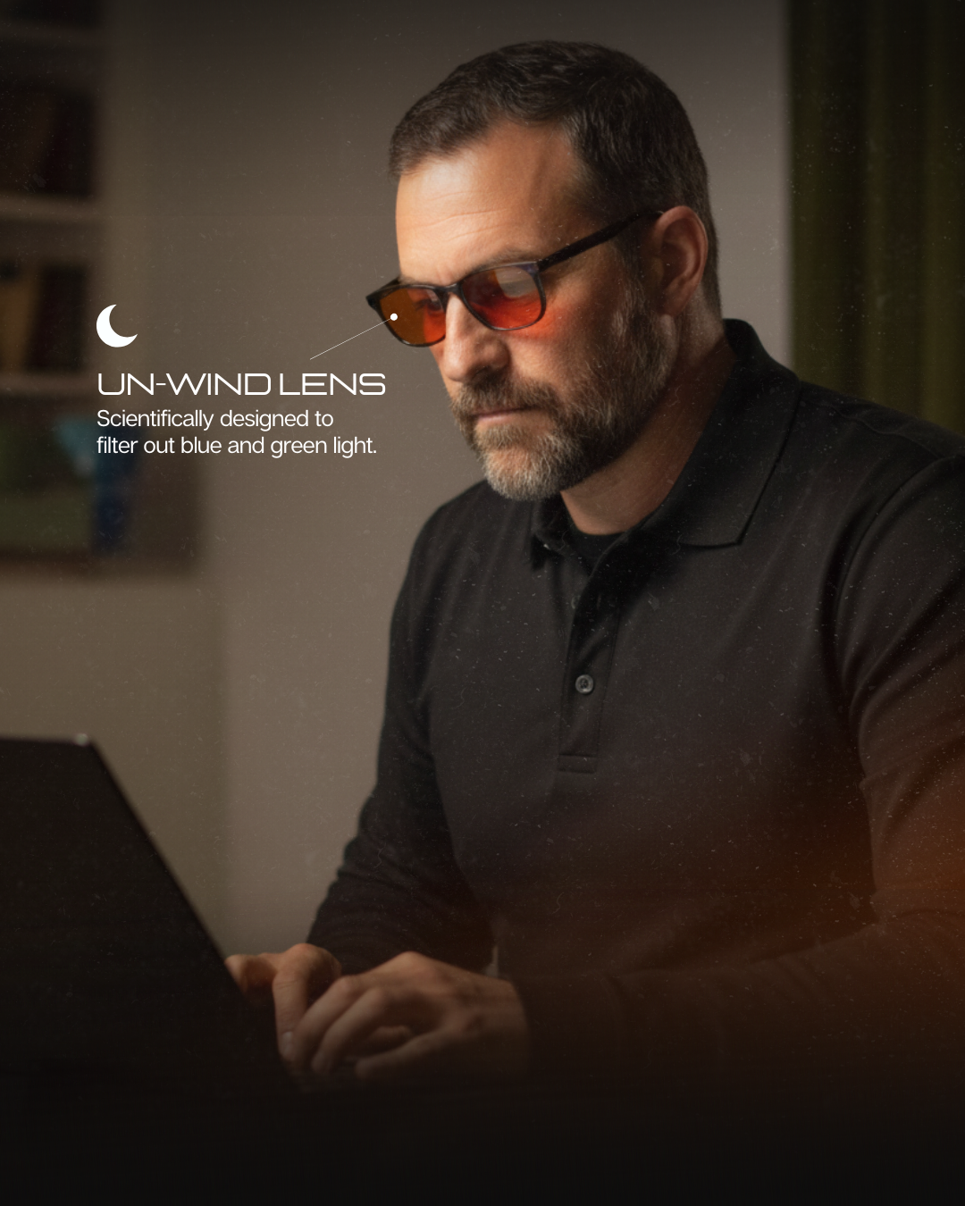 Un-Wind lenses block both blue and green light - the wavelengths that delay melatonin and keep your brain alert.